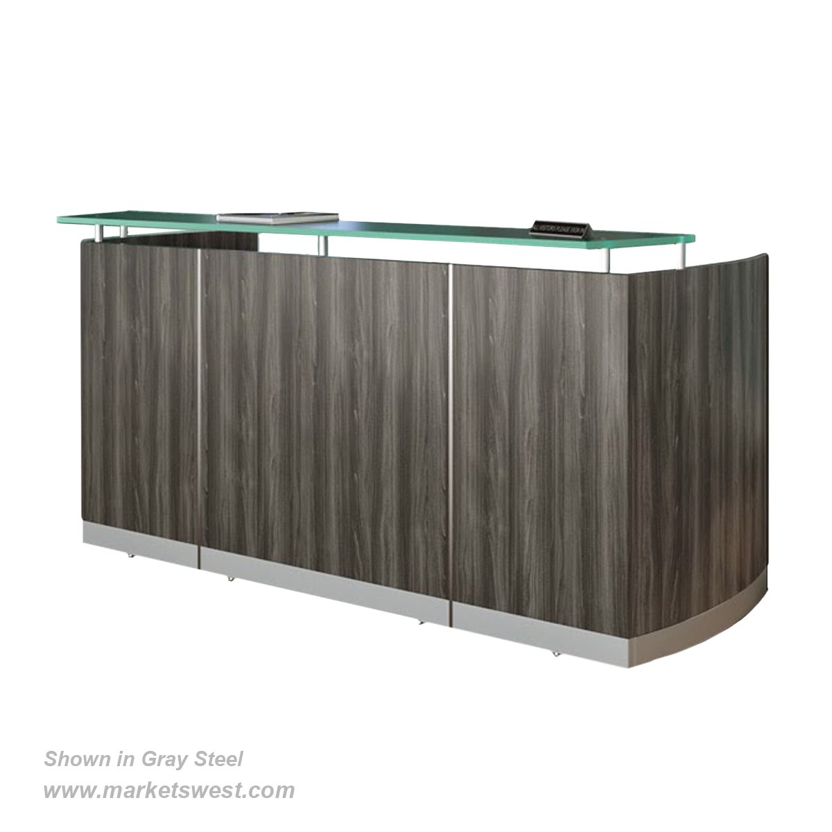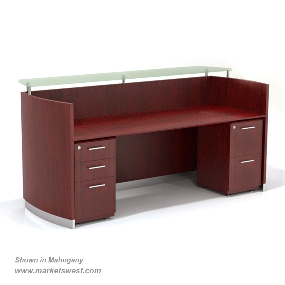 Medina Series Reception Station, with File/File & Box/Box/File Drawers. Available in 5 Laminate Finishes: Gray Steel, Mahogany, Mocha, Textured Brown Sugar, and Textured Sea Salt.